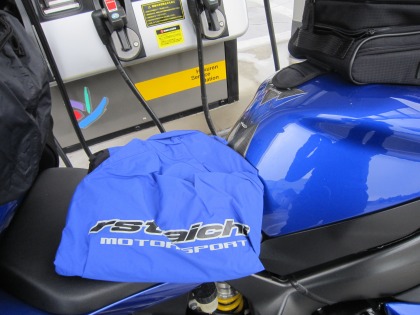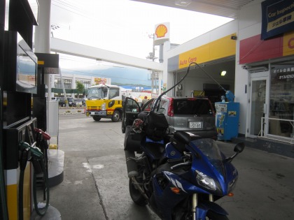 9:45 給油しつつ 道道52号と国道243号線との交差点にあるホクレンで今日1回目のガソリンを給油。 霧雨も止みそうにないので、ここで今回のツーリング初のカッパを着ます。 (レインウェアーと言った方がかっこいい?) |