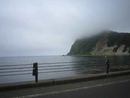 11:06 天気は 今日も海からの湿気が強く、山の上の方は雲ができています。 今回の北海道にきてからずっと、海岸線はこんな感じで、すっきり晴れることはありませんでしたね。(>_<) |