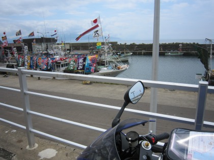 12:29 祭り 国道229号線で神恵内(かもえない)を過ぎ、しばらく走ると漁港では祭りをやっていました。 今日は金曜日、平日ですが、御輿(みこし)が出ていました。 ただ、若手の御輿の担ぎ手がいないらしく、御輿をトラックの荷台に載せて町内を巡っています。 こういった光景を見ると、漁村・農村部における高齢化を痛感しますね。 |