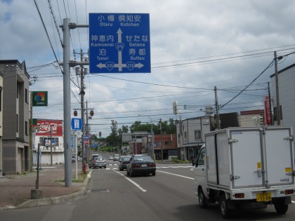 13:19 倶知安(くっちゃん) 国道5号線に入り約15km、倶知安の市街地に到着しました。 この交差点を左折して、国道276号線に入り東進し、国道230号線を目指します。 |