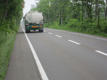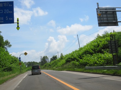13:10 国道5号線 岩内町から国道276号線を10kmほど東進。 国道5号線に突き当たって、右折して国道5号線に入りました。 国道5号線を南東に走り、倶知安(くっちゃん)を目指します。 北海道の地名は、アイヌ語由来が多く、読めない地名が多いです。よね。 この区間はしばらく移動区間。 無理をせずに走ります。 内陸に入り、気温が上昇。 厚さを感じます。 |