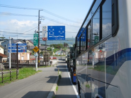 12:43 日本海と 泊村を過ぎて岩内町が近づくと、国道229号線は海岸線を離れ、内陸に入ってきます。 ここで、日本海とはお別れ、太平洋側に向かいます。 |