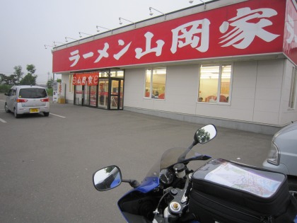 17:42 夕食 先ほど苫小牧のフェリー埠頭に着く頃から霧雨が降っています。 夜になって本降りになると移動が嫌なので、ちょっと早いですが夕食にします。 別にそんなにお腹が空いている訳でもないんですが。 北海道最後の夕食は苫小牧市内の寿司屋ででも、と思っているんでしょうけど、捕まらなければ! 何というか、後ろを取られた、と言うのかな。めげてます。 『もう、北海道はいいや!』って気分。 で、フェリー埠頭の入口にあった”ラーメン山岡家” 千葉・栃木で良く見かけるのですが、北海道でもちょくちょく見かけました。 横浜家系のラーメン店ですが、濃いめのはっきりした味が北海道でも受けるんだ勝手に解釈し、関東の会社と思い、ネットを見ていたら本社はなんと札幌でした。 |