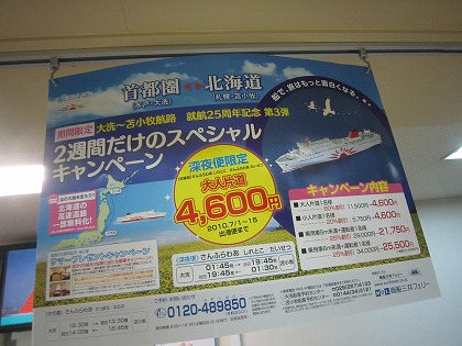 16:39 フェリーターミナルに到着 捕まったにもかかわらず(-_-)、5時前にフェリー埠頭に到着しました。 夕方のフェリーの時間に間に合いました。 まだ、空きがあったので、変更可能です。 ですが、結局夕方のフェリーに変更するの止めました。 (-_-;) 自分が予約した深夜便はスペシャルキャンペーン中で、通常大人片道¥11,500のところ、なんと¥4,600!、¥6,900もお得です。 (バイクの料金は別途) ¥6,900あれば、北海道でもう一泊できる! ¥6,900あれば、ウニ丼が3杯くらい食べられる! ¥6,900あれば、さっきの反則金・・・・半分くらい払える。 (T_T) まあ、3日目の反則金¥15,000とさっきの反則金¥12,000、合計¥27,000 北海道警察に協力させていただいてますんで、倹約して深夜便で帰ります。 (-_-) |