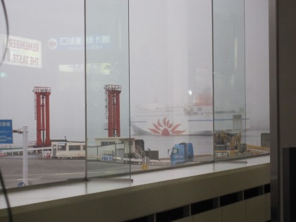 8:46 目を覚ますと 目覚ましをかけず、眠りたいだけ寝て、目が覚めました。 船窓から外を見ると、激しく靄(もや)がかかっていて、どこを走っているのかまったくわかりません。 話は代わりますが、フェリーを使ったロングツーリングはいいですね。 行きのフェリーでは、これからのツーリングのプランを考えたり。 帰りのフェリーは、ツーリングの疲れが取れて、のんびりできるので。 関東から九州に行くフェリーが無くなってしまったのが、残念に思います。 |