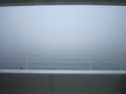 14:07 昼寝から 起きました。 昼寝から。 (^O^) 相変わらず、船は靄の中を走ります。 船は凄いね。夜もそうだけど、この靄の中も何も見えない。 レーダーだけを頼りにして、無視界航行だ。 もし、バイクに高性能なレーダーを付けて、それだけ見て走れと言われても、自分には怖くてできない。 |