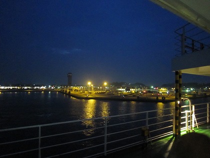 18:44 夕方便は出航 18:30になり、夕方便の大洗行きフェリーを見送ります。 深夜便は7時間後の25:30出航。 それまで、待ちます。 |