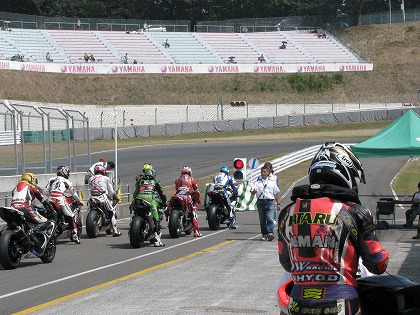12:20 JSB予選 12:10にピットウォークも終わり、12:20からJSBクラスの予選が開始されます。 各マシンはピットロードで出口のシグナルがグリーンに変わるのを待ちます。 |