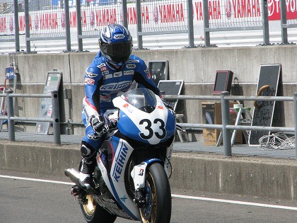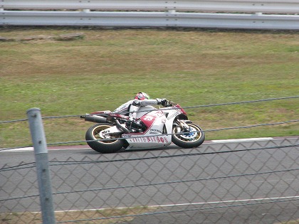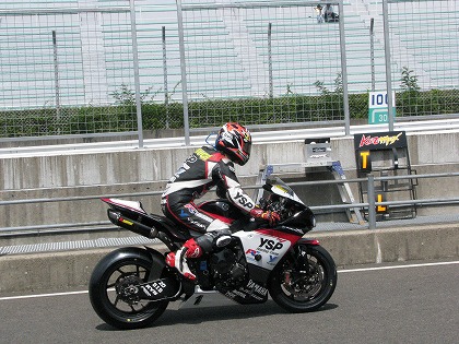 12:20 ピット前通過 JSBの公式予選が始まりました。 ピット前を現JSBチャンピオンの中須賀選手が通過していきます。 |