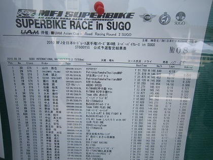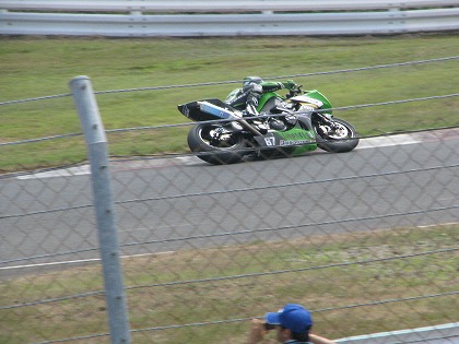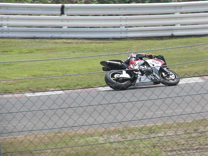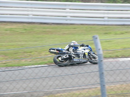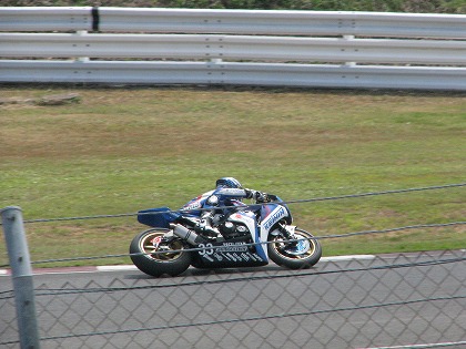 12:36 タイムアタック中 各マシン、タイムアタックに入りました。 パドックから、3コーナーを通過するマシンを捕らえます。 JSBの決勝も写真を撮ろうと思ったんですが、ST600のレースが終わったら疲れてしまって、ピットでディスプレイを見てました。 なので、JSBの決勝の写真はなし。 ここで、簡単に結果を書いちゃいます。 JSBでポール・トゥ・ウィン、今年初優勝した伊藤選手。 今年限りで引退とは勿体ないですね。 |