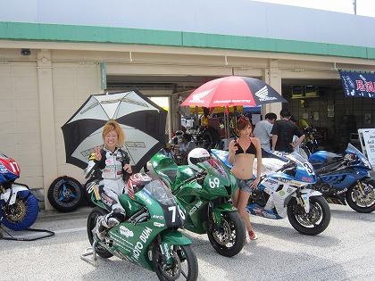 11:49 モトバム 3つとなりのモトバムのピット。 ライダーもレースクィーンも女の子。 |