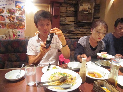 20:47 黙々と Team 92R HiRaNo です。 今回はメカさんが同席していませんが、ライダー入れて総勢7人と少人数精鋭で、まとまってますよ! (^o^) 後から写真見ると、暗そ~うに食べてますが、そんなことはありません。 みんな、お腹が空いて、黙々と一生懸命食べているだけです。(笑) |
