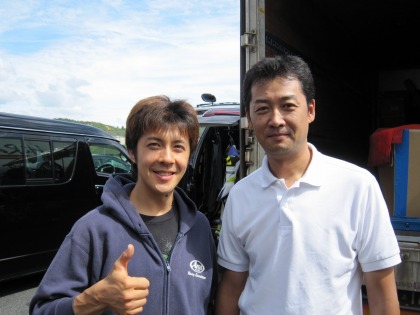 11:45 つるちゃんが応援に 國川くんと自分が知り合うきっかけとなったバイク屋さんコシカワK2Y。 今は大阪に住んでいますが、20年以上も昔同じコシカワK2Yの常連さんだったつるちゃんが応援に来てくれました。 レースウィークの土日はどちらも子供の運動会とかで、来ることが難しく、仕事をサボって(?)否、休んでの応援です。 ありがとうございます! (^^)/~~~ |