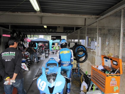 14:42 ART走行 2回目 ART走行2回目は14:45から30分間。 ボチボチ、走行の準備を始めます。 國川選手の中では、走り始めてセッティングに大きな問題が無ければ、時間一杯レースディスタンスを走る計算でいます。 |