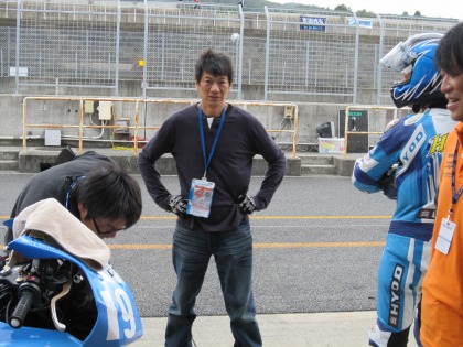 9:14 レプソル21原さん 今回、大阪に住むレプソル21原さんにもヘルパーをお願い。 土曜の予選、日曜の決勝と手伝ってもらいました。 ありがとうございました。 (^_^)/ レプソル21原さんは、ここ岡山国際サーキットのライセンス持ち、ときどき走っているそうです。 |