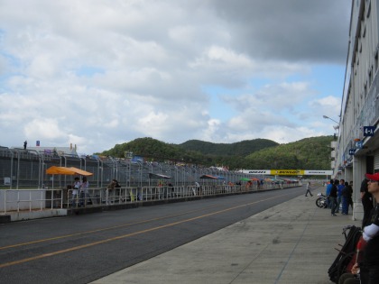 10:31 B組 予選1回目 B組の予選は10:35から。 A組の予選中に降った雨は止んでいます。 雨量も少なかったため、路面はドライの状態です。 |