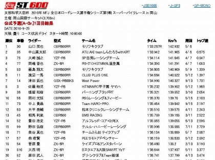 2010年9月25日(土) 全日本ロードレース選手権 第5戦 in 岡山国際サーキット(公式予選)