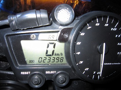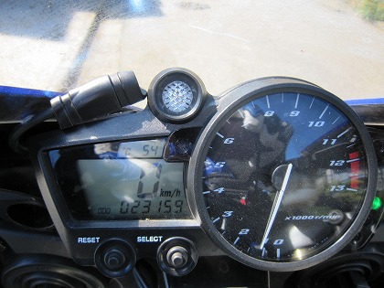 11:13 開放 今週末の3連休は、家の行事で3日間拘束されるはずでした。 最終日の今日、11時前に家の行事から急遽開放されました。 (昼間だけですが) 土曜日と日曜日の午前中は天気が悪かったのですが、今日は快晴。 出かけしたいモード全開です。 (*^o^*) そんなわけで、超久し振りにツーリングに行くことに。 と、言っても昼も近いので、いつもの山中湖周辺まで、”昼食ツーリング”と相成りました。 行事から開放され、そそくさとツーリングの準備。 携行缶からガソリンをタンクに移して満タンに。 走り始めの距離、 23,159km。 さっそく、出発します。 |