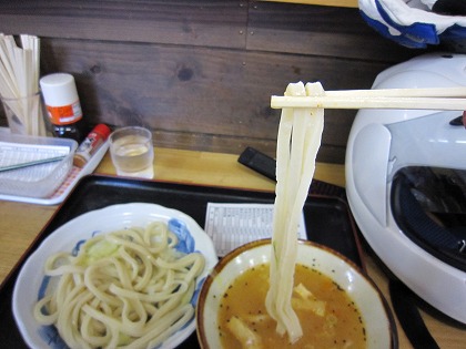 13:51 肉玉つけうどん 注文は、肉玉つけうどん。 伝票をよく見るとわかるが、”大盛”だ!(笑) ¥550也 注文して、5分ほどで出てきました。 早速、『いただきます!』 |