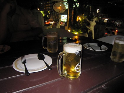 20:31 Shingha Beer Asokの駅からしばらく歩いて、Shingha Beer の直営店へ。 軽い喉ごしのShingha Beerはタイの気候と合っていますね。 バンコク市内のレストランを訪れると、100% Shingha Beerは置いてあって、半分くらい輸入ビールとして Heineken が置いてあるみたいです。 そして、Heinekenの方が少し高い。 自分はもっぱら、値段の安い Shingha |