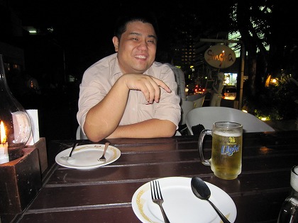20:31 久し振りで会食 今日の夕食は、以前K2Yのお客さん仲間だった河埜くんとAsokの駅で待ち合わせて食事。 河埜くんとは、自分がまだTLに乗っているとき、一緒に北海道ツーリングに行きました。 タイに来る前に、Twitterのダイレクトメッセージで連絡。 タイに着いてから、日程を調整して今晩集う。 河埜君は1年半ほど前からバンコクに来て仕事してます。 ”以前より”少しスリムになって元気そう。 タイが合っているみたいです。 と言うことでタイ訪問4日目、おわり。 タイ訪問(5日目)に進む |