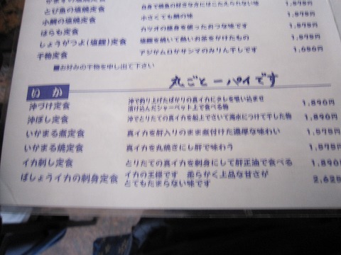 12:07 注文は 前回来たときのツーリングレポを事前に読んで、今回の注文は”いかの沖づけ定食”にしようと心に決めてきました。 で、注文 (^0^)/ 『いかの沖づけ定食!』 「やってません!」 『・・・・・。』 (-_-) 『じゃぁ。 イッ、イカ刺し定食!』 !(^0^)! 「今はやってません!」 『・・・・・。』 イカにスイッチ入っちゃってるんですけど・・・。 (T_T) 「生のイカは時期じゃないから。 6月くらいからじゃないと・・・」 そのとおりでございます。 イカの旬は、初夏からだもんね。 こんな真冬に頼んだ自分が悪うございました。 (^_^;) ちなみに、隣の席で”かつおのまご茶定食”を頼んでいるおばちゃん、カツオも今は旬じゃないからありませんよ。 |