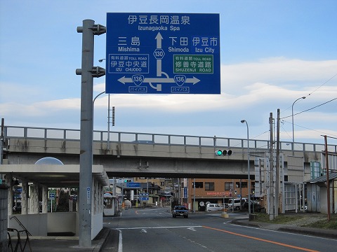 15:46 伊豆長岡温泉方面へ 県道130号線を3kmほど進み国道136号線バイパスとの交差点まできました。 ここ右折して三島方面に進むと伊豆中央道。 修善寺道路が緑色で有料道路とわかりますが、青色表示の伊豆中央道も有料道路、うっかり右折して伊豆中央道に入ると、料金取られます。 微妙なトラップ? (>_<) そのまま直進して、伊豆長岡温泉方面に進みます。 |