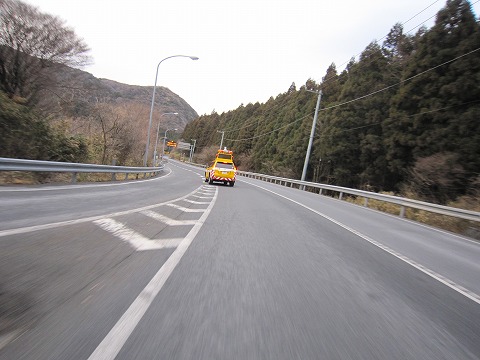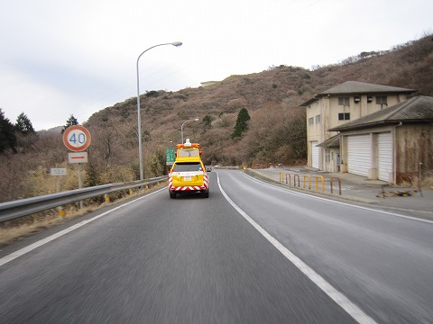 16:44 箱根新道 県道20号線で箱根峠まで進み、右折して箱根新道に入りました。 入る直前に、前方に道路管理車両。 パトライトを回して走っているんだけど、警察のパトカーじゃないんだけど、なんか露骨に抜きにくい。 ^^; |