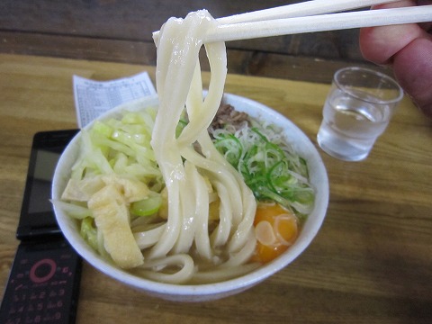 11:57 肉玉うどん 注文は肉玉うどん(大) ¥550。 土日の昼食時は、お客さんがくることを見込んで早めに茹でています。 茹で上がったそばからテーブルに運ばれていくので、注文すると、さっと出てくるのがいいですね。 (作り置きではありません) しかし、今日は駐車場に駐まっている車も少な目、店内も空いています。 まあ、まだ昼前なので普段でも待つほどではありませんが、普通の土日であれば12時半を過ぎる頃には、待ちのお客さんができるほどのお店です。 やはり、震災の影響だと思いますが、出足は鈍いようです。 都内の飲食店では、震災前の2〜3割なんて話も耳にします。 経済を回してやらないと、ほんと失速してしまうのではないかと感じます。 |