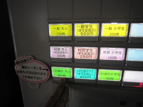 12:15 入湯 駐車場に駐まっている車も普段の日曜日に比べると全然少ない。 以前、何回か来たことがありますが、入ったのは1回だけ、その他は混んでいてやめるぐらいです。 今日は空いているのを予想してきましたが、正解のようです。 入り口の券売機で入浴券を購入。 JAFの会員カードを持っているので、10%割引、630円を購入。 インターネットのホームページにも割引クーポンが出てますね。 |