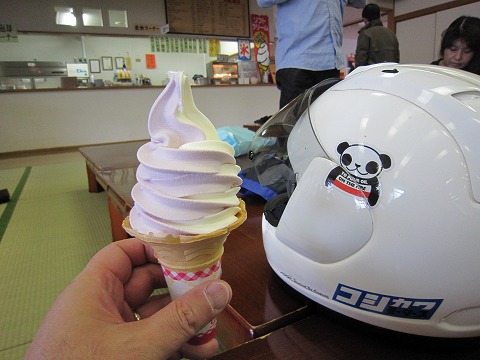13:03 入浴後 入浴中の写真は流石にありません。 温泉は最初内風呂へ。 体が少し温まったところで、露天風呂に移動。 今日は雲が厚く、残念ながら富士山は見ることができず。 冷えた体が十分に温まったところで、温泉から上がります。 そして休憩所へ。 汗をかいた体はソフトクリームを欲しがる。(笑) バニラと甲州の特産品ぶどうのミックス。 ぶどうの淡い紫色の写り方が、微妙。(-_-;) ぶどうの味は、写真ほど微妙じゃない。 (^O^)/ 水分を補給した後は、ちょっと惰眠。 畳で昼寝が気持ちいい。 (-_-)。。。 |