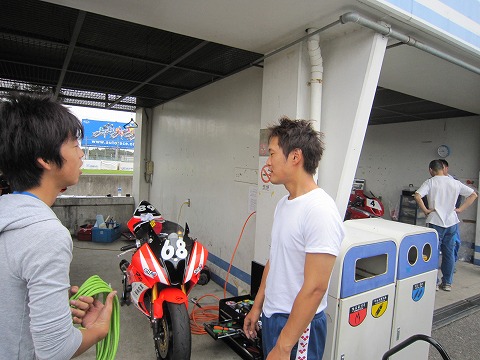 10:44 ピットにもどって 次の走行まで少し時間があるので、Fujihideくんのピットへ。 Fujihideくんは今日は、B1とB2の2本。 これで終わり、撤収の準備をしてました。 明日の日曜日は鈴鹿で練習だそうで、今日これから戻って、鈴鹿に向かうそうです。 若い人間は体力があるよね。 やっぱり、上手くなろうと思ったら、まずは体力がないと。 『今日は、タイヤのアドバイス、ありがとう! 気をつけて行ってきてねぇ〜。 (^_^)v 』 |