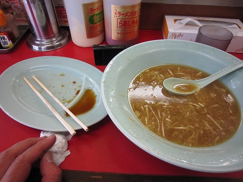 13:00 ごちそうさまでした。(汗) このお店、土曜日の昼時と言うこともあるけど、結構繁盛してる。 繁盛しているだけあって、美味しいラーメンを提供していますね。 『ご馳走様でした!』 そして、なぜか空いた餃子の皿が・・・。 (^_^;) |