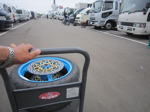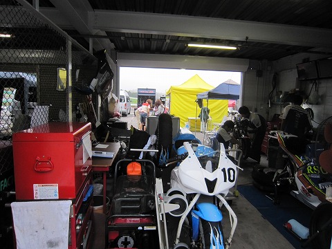 6:20 走行準備 8時からの走行のため、準備を進めます。 と言っても、昨日練習走行を走るつもりでセットしてあるので、早々と来たのは基本タイヤウォーマーを入れるだけですが。 |