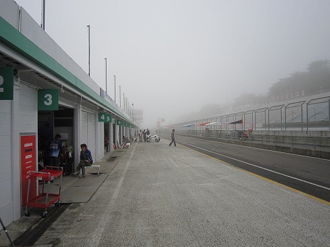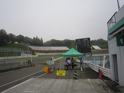 7:56 コースオープン前 ST600クラスのフリー走行は8時から20分間。 フリー走行の後は11:10からの公式予選になります。 この朝フリーで予選に向けてのベストなセッティングを確認しておきたいところです。 コースの靄も晴れ、ST600クラスのフリー走行の開始を待ちます。 |