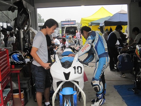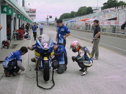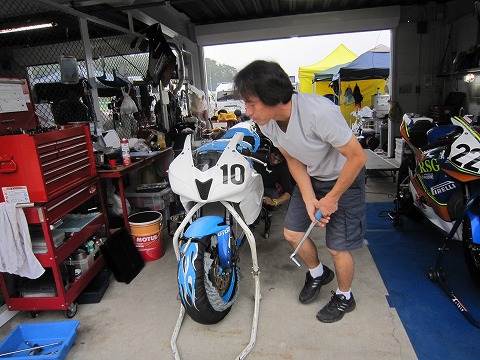 10:04 着替えて 予選に向け、マシンのカウルを練習用から本ちゃん用に着替え。 バイクも予選の準備を進めます。 |