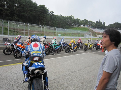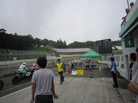 11:08 予選開始2分前 ST600クラスの予選開始、2分前になりました。 各ライダーはピットロード端にバイクを並べ、予選開始の時間を待ちます。 この時点でコースコンディションが非常に微妙になってきました。 コースの一部では雨が降ってウエットコンディション。その他は曇っているもののドライコンディションです。 この後、天候がどのように変化していくか、予選のポイントになりそうな予感です。 |