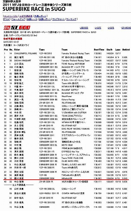 | 2011年8月27日(土) 全日本ロードレース選手権 第5戦 SUGO (予選) | |||