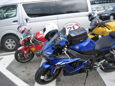 8:46 上里SAに集合 練馬から関越自動車道に上がり、集合場所の上里SAに到着しました。 集合時間は9時だったので、先に到着したと思ったら、アイスエイジさん(BMW)と岩井さん(ドカ)は到着ずみ。 みんな歳を取って早起きになりました。(爆) |