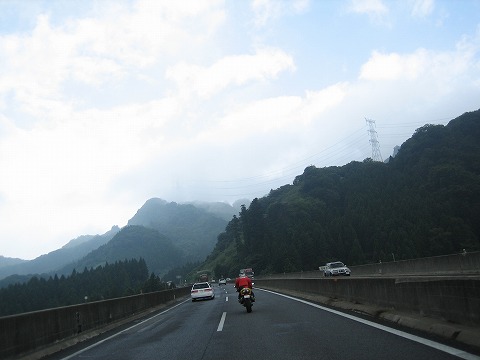 10:04 上信越自動車道で 上里SAで給油をした後、藤岡ジャンクションから上信越自動車道で長野方面を目指します。 路面はにわか雨が降ったのか路面は所々ウェットパッチが。 目の前には妙義山の山々が見えてきました。 行く手は雨が降っていそう。 |