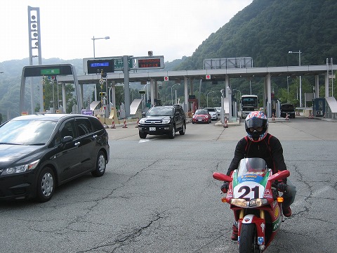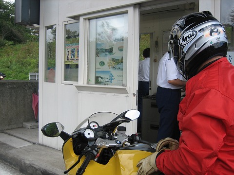 10:10 料金所1 アイスエイジさんのBMWはETCの調子がイマイチ。 ETCゲートを通過できず、普通のゲートへ。 これがなければ、シェルカードを落とさずに済んだかも。 エビナくんのR6はETCなしよ。 |