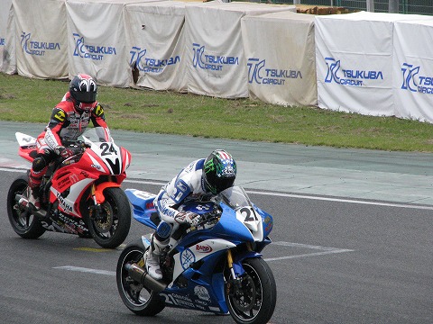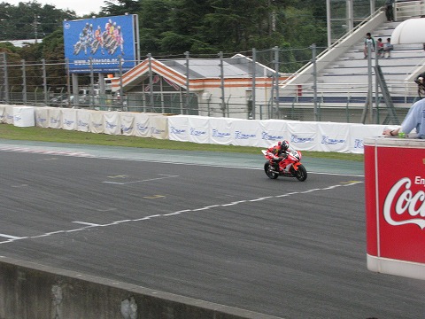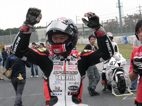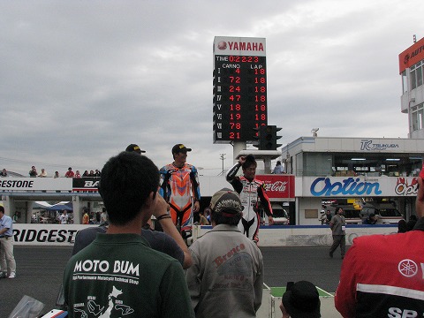 15:00 表彰式へ ウイニングランを終え、Fujihide選手がホームストレートに戻ってきました。 さあ、表彰式へ。 |