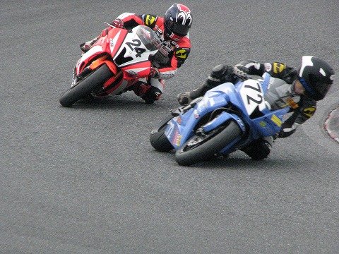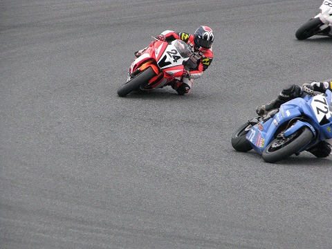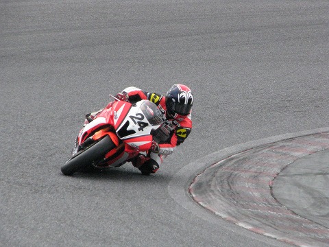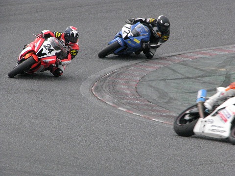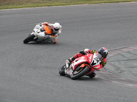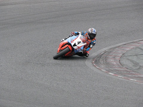 14:42 1ヘアピン レースがスタートし、自分はいつものように1ヘアピンにダッシュで移動。 (夏の第3戦の時は暑さで移動をさぼったのよね。(笑)) 2周回が終了し、1ヘアピンにトップで戻ってきたFujihide選手。 『いけ〜っ!』 (^^)/~~~ |