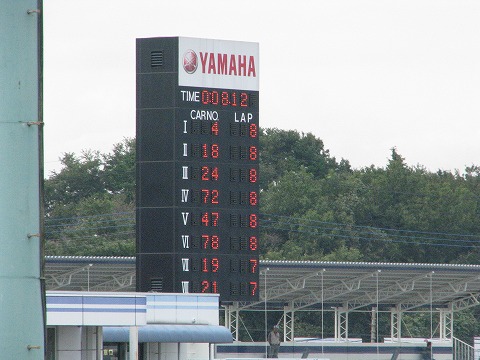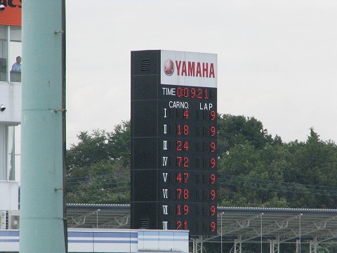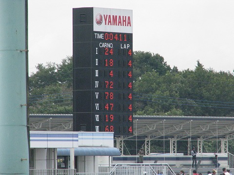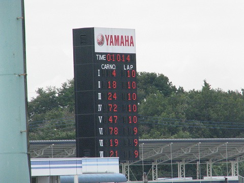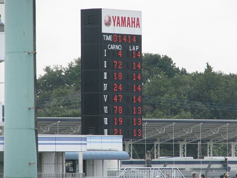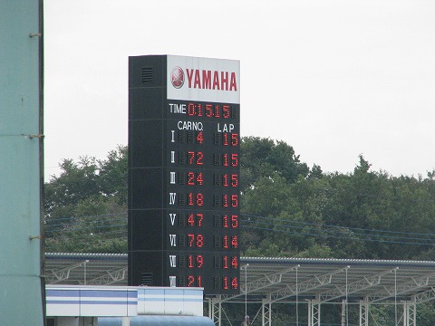 14:55 2位を追う 3位に浮上したFujihide選手。 前を行く2位の#72の澤村選手を追いかけます。 15周回を終え、レースは後3周。 自分はホームストレートにダッシュで戻ります。 (^^;) |