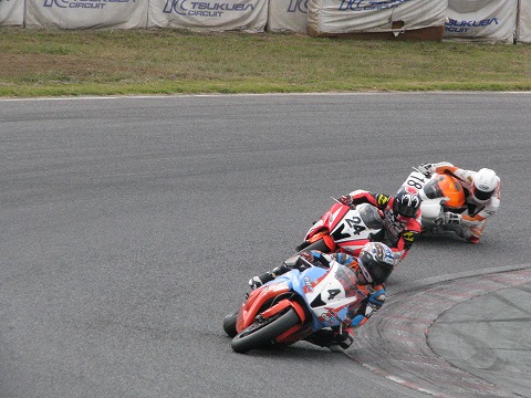 14:47 後方では Fujihide選手が3台で2位争いをしている後方では、#19の小倉選手が6番手争いを繰り広げています。 |