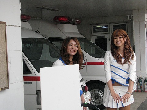 14:59 ちょっとだけ 各ライダーがウイニングランをしている中、自分はピットの上からFujihide選手を出迎えるべく、ピットロードへ。 途中、表彰式を控えた筑波サーキットのレースクィーンに遭遇。 これはチャンスと、カメラを向けると、笑顔をかえしてくれました。 おじさんとしては、鼻の下が伸びます(笑) |