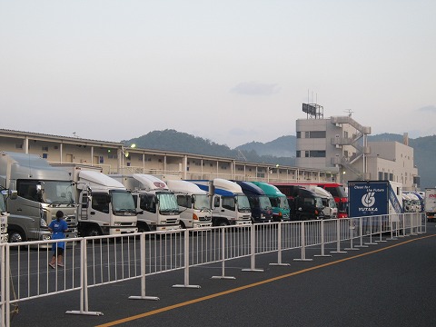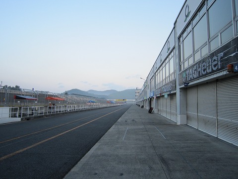6:14 パドックに到着 駐車場に車を駐め、ピット裏まで歩いてきました。 1年ぶり、3回目の岡山国際だね。 トラック軍団はすでに昨日のうちに搬入済みです。 |