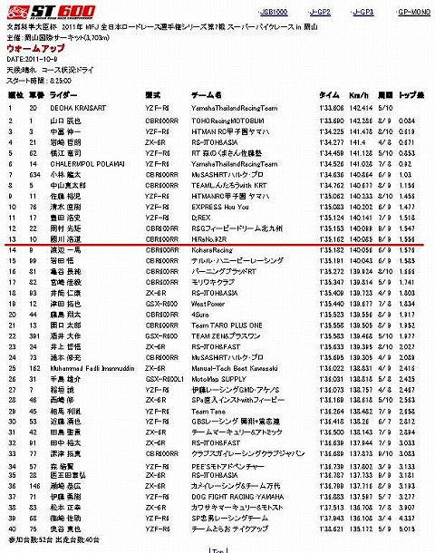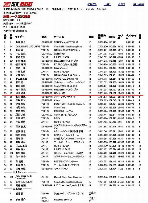 | 2011年10月9日(日) 全日本ロードレース選手権 第7戦 岡山国際 (決勝) | |||