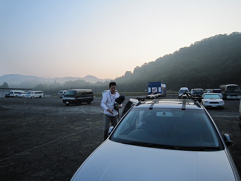 7:39 と言うことで もう一台のデジカメをつるちゃんに渡して、カメラマンをお願い。 と言うことで、珍しく自分が写ってます。 朝のウォーミングアップに向けフロントのセッティングを変更。 一応、ネジ締めたりなんかもしてるんですよ。(笑) |