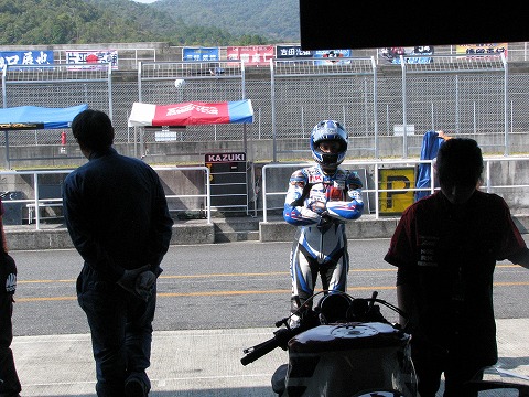 10:49 5分前 スタート進行5分前です。 レーシングスーツに着替えて戦闘準備完了。 |